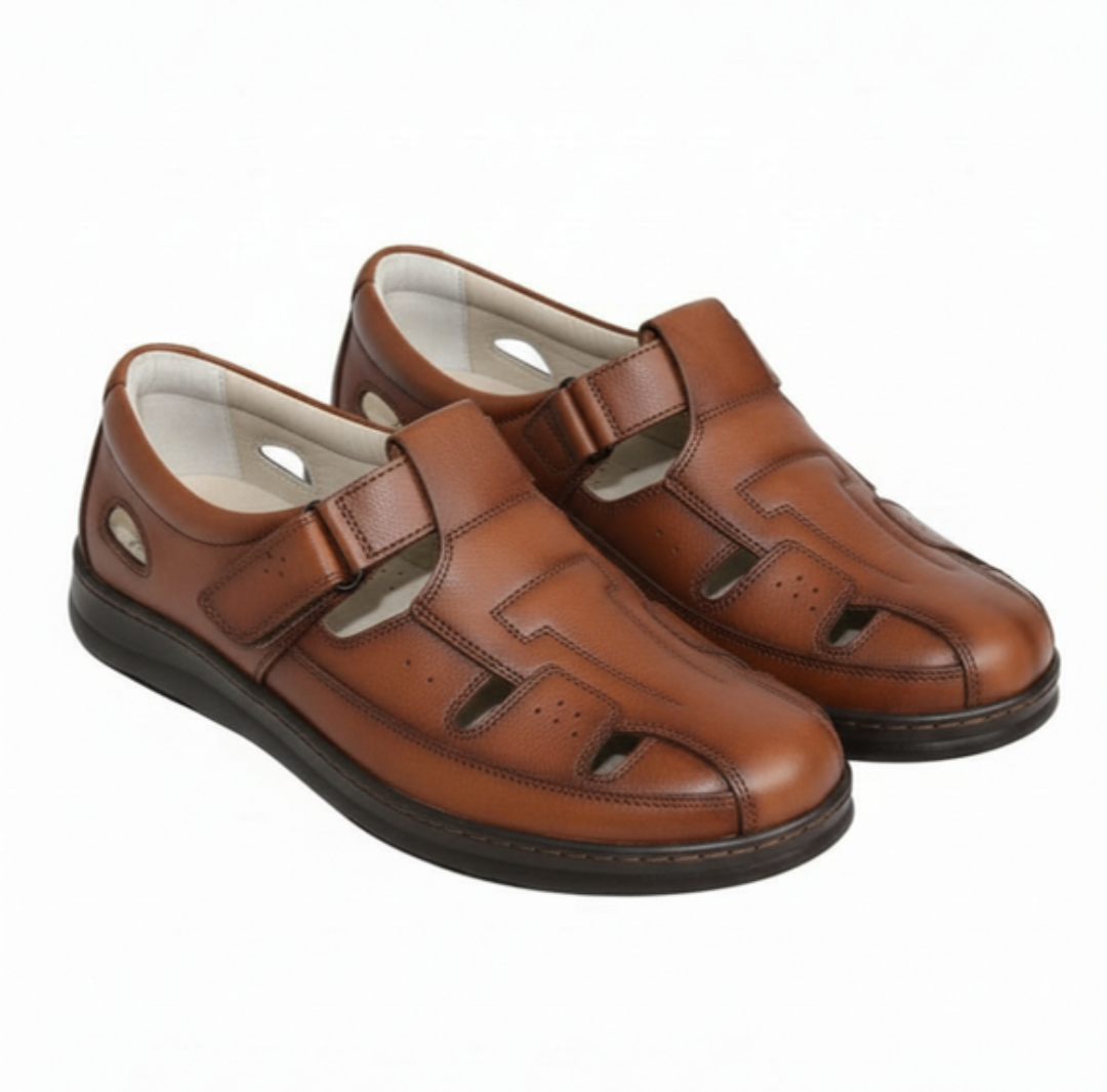 Sandales Homme ORTHOPÉDIQUE 100 % Cuir Marron (F1001M)